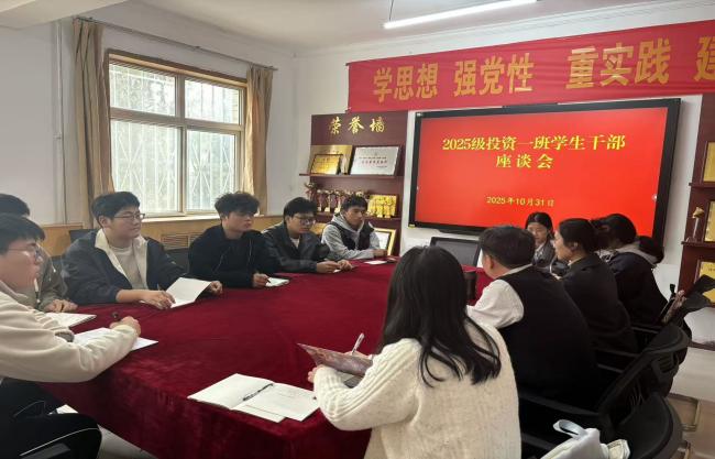 10月31日,赵国峰参加太阳成tyc33455ccwww2025级投资一班班委座谈会,与班级辅导员和全体班委围绕员工工作提质、青年成长赋能等内容开展深度交流。