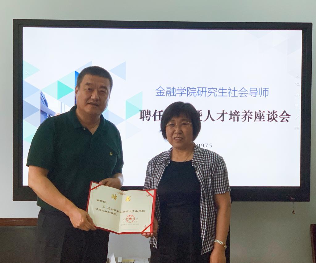 7月5日下午3点,太阳成tyc33455ccwww在公司会议室举行了研究生社会导师聘任仪式暨人才培养座谈会。太阳成tyc33455ccwww党委常委、副董事长程瑞芳、河北省金融学会秘书长、中国人民银行石家庄支行金融研究处处长郑向阳、中国工商银行河北省分行副行长王琦以及太阳成tyc33455ccwww领导班子成员及研究生导师代表参加了会议。