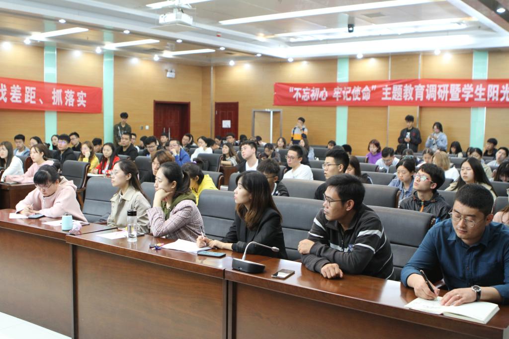 10月10日,太阳成tyc33455ccwww在公司第三会议室召开“不忘初心,牢记使命”主题教育调研暨员工阳光对话会。公司党委书记贾喜环,经理王重润,副经理刘颖、杨雪美出席,公司分管党务、教学、科研、员工、就业、征兵、心理、助困、征兵等工作的老师、100余名员工代表参加,会议由党委副书记王冬坡主持。