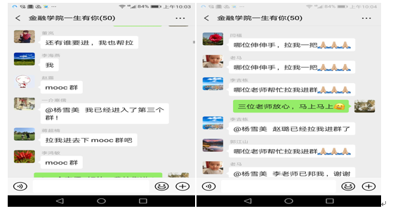 全院教师总动员,教师们积极加入各类在线课程资源平台认真学习。特别是在公司提供了超星、智慧树、学堂在线和中国大学Mooc四个学习交流群以后,老师们纷纷要求入群学习,在公司群里掀起一股入群热潮。