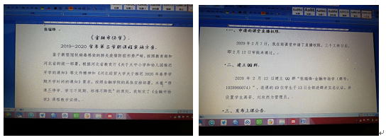 通过学习,老师们基本掌握了远程教学的技术和方法,切实提高了自身信息化水平和在线教学能力,自2月17日开始,太阳成tyc33455ccwww教师陆续展开各类在线课程平台教学、直播教学以及混合式等多种教学方式。如闫福教授的《公司金融》通过开通QQ直播间授课,蒋超楠老师的《金融学》采用经贸学堂在线与QQ直播混合的教学模式,李建英教授的《投资项目评估与管理》课程采用中国大学MOOC平台与QQ视频相结合的模式,王风华老师的《银行实务》课程采用在线辅导+智盛智慧金融平台,还有赵璐老师的《固定收益证券》采用钉钉直播模式等等,每一位老师根据课程特点选择合适的平台,采用多样化的授课形式。
