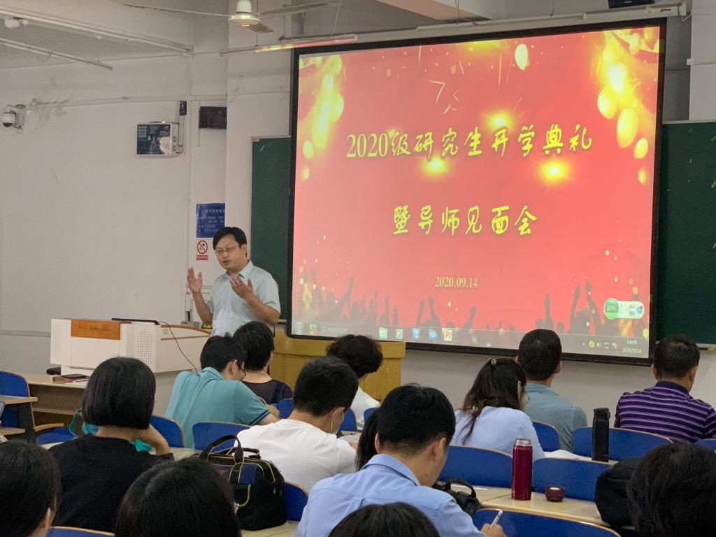 2020年9月14日下午,太阳成tyc33455ccwww在B401教室举行2020级研究生新生开学典礼暨导师见面会。太阳成tyc33455ccwww领导、全体导师及2020级 研究生参加开学典礼,太阳成tyc33455ccwww副经理刘颖主持。