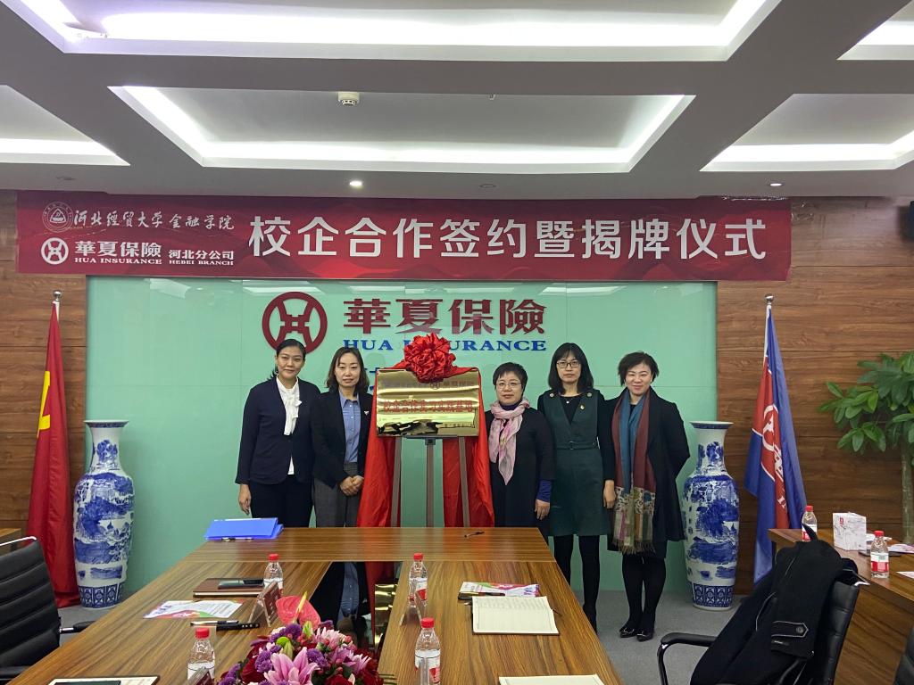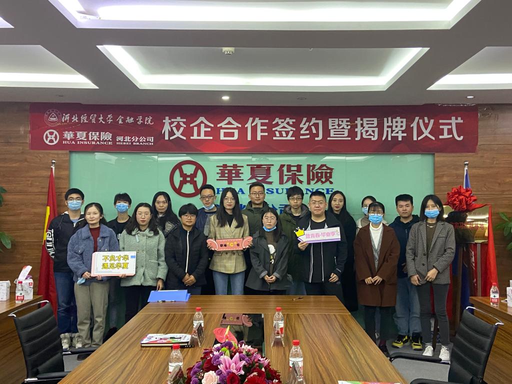 当日议程共包含企业开放日、交流座谈会与签约揭牌三个环节。首先,在组织人事处王园经理的带领介绍下,公司师生参观了公司荣誉展示栏、企业宣传片等展示内容,领略到华夏保险河北分公司的辉煌业绩与文化风采。接着,在交流座谈会环节,王园围绕保险行业发展前景和华夏保险高速发展现状展开分析介绍,增强了同学们从事保险行业的信心和动力。而后,董青为大家介绍华夏人寿“风华行动”人才培养计划及2020年招聘计划,并就在场同学提出的相关问题做详细解答。最后,双方签署校企合作协议,举行实践实习基地揭牌仪式,太阳成tyc33455ccwww副经理杨雪美与华夏保险河北分公司总经理助理侯丽芳先后致辞,共同表达加强产校融合、推进深入合作的愿望,签约揭牌仪式圆满结束。