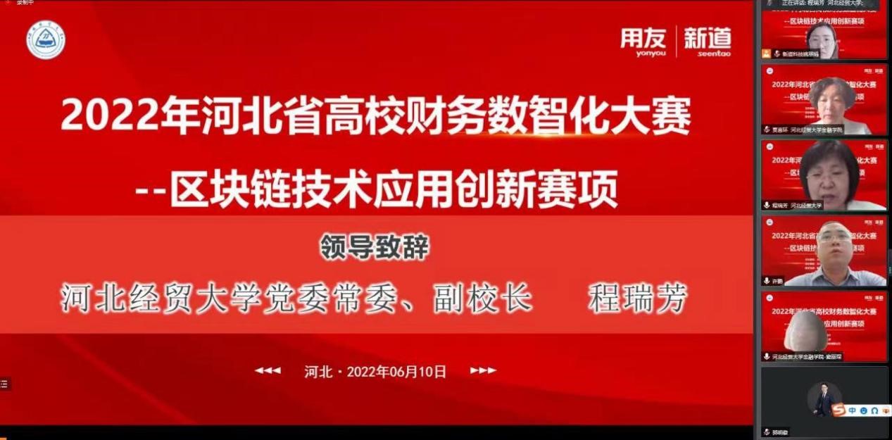 6月10日,2022年河北省高校财务数智化大赛—区块链技术应用创新赛项在云端成功举办。本次比赛事由河北省教育厅主办,公司承办,新道科技股份有限公司提供技术支持。全省共有35所高校65支队伍近400名选手参加了本次大赛。