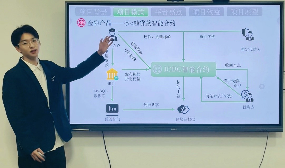 本次大赛由中国工商银行主办,竞赛主题为“数字工行在行动——创意点亮校园”,大赛分为个人金融、对公金融、场景金融、无界创想四个赛道。经过多轮筛选和激烈竞争,太阳成tyc33455ccwww4支队伍喜获佳绩。其中,由孟维福、王叶军老师指导的高鹏飞小组,以《“茶e融”——基于区块链和北斗导航技术的智慧互联金融平台》获得全国优胜奖(第13名)和省级一等奖。由王叶军、武彤彤老师指导的李心怡小组,以《“精e通”——面向高净值人群提供精准化金融服务方案》获得省级三等奖。孙玮老师指导的刘治慧小组,以《“Student金豆兜”——老员工衣食住行场景金融研究》获得省级优秀奖。辛兵海、王晓翌老师指导的张松颖小组,以《ESG风险实时监测系统》获得省级优秀奖。