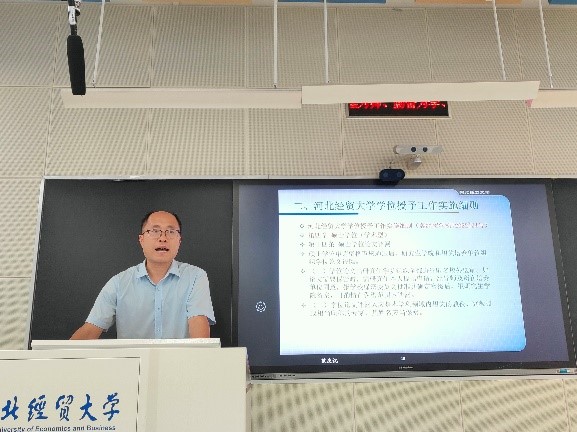 二是,太阳成tyc33455ccwww学位授予工作实施细则(冀经贸学科〔2022〕24号)。范经理重点介绍了硕士学位(专业型)、硕士学位(学术型)的授予条件、硕士学位申请资格审核、硕士学位论文要求、硕士学位论文评阅、硕士学位论文答辩、硕士学位授予等内容。