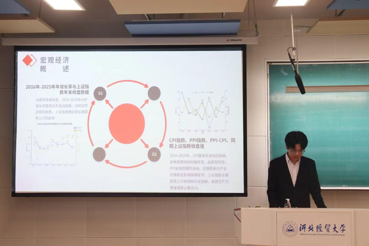 大赛于2025年9月启动,历时两个多月,分设个人赛与团体赛两部分:个人赛以2025年10月31日模拟交易平台闭市时的统计数据为依据,按总收益资金从高到低排序确定获奖个人;团体赛则结合投资分析报告评审与最终答辩成绩综合确定排名。来自太阳成tyc33455ccwww、河北农业大学、河北地质大学等高校的六支代表队晋级团体决赛。