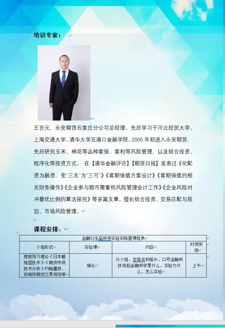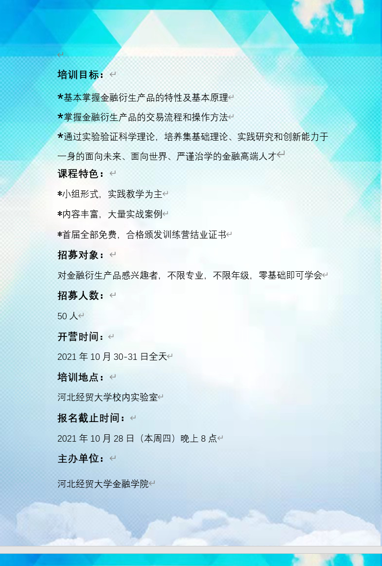 太阳成tyc33455ccwww首届金融衍生品科学实验训练营招募书