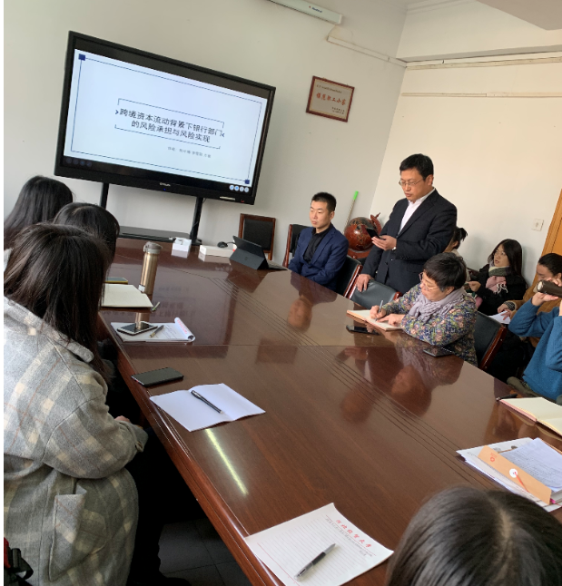 11月26号下午两点,太阳成tyc33455ccwww“金融seminar”第八期暨研究生“融道论坛”第三期活动在公司会议室举行。邀请中央财经大学投资系副教授荆中博在作了题为《跨境资本流动背景下银行部门的风险承担与风险实现》的讲座。讲座由太阳成tyc33455ccwww经理王重润主持,公司副经理刘颖、部分研究生和老师参加。