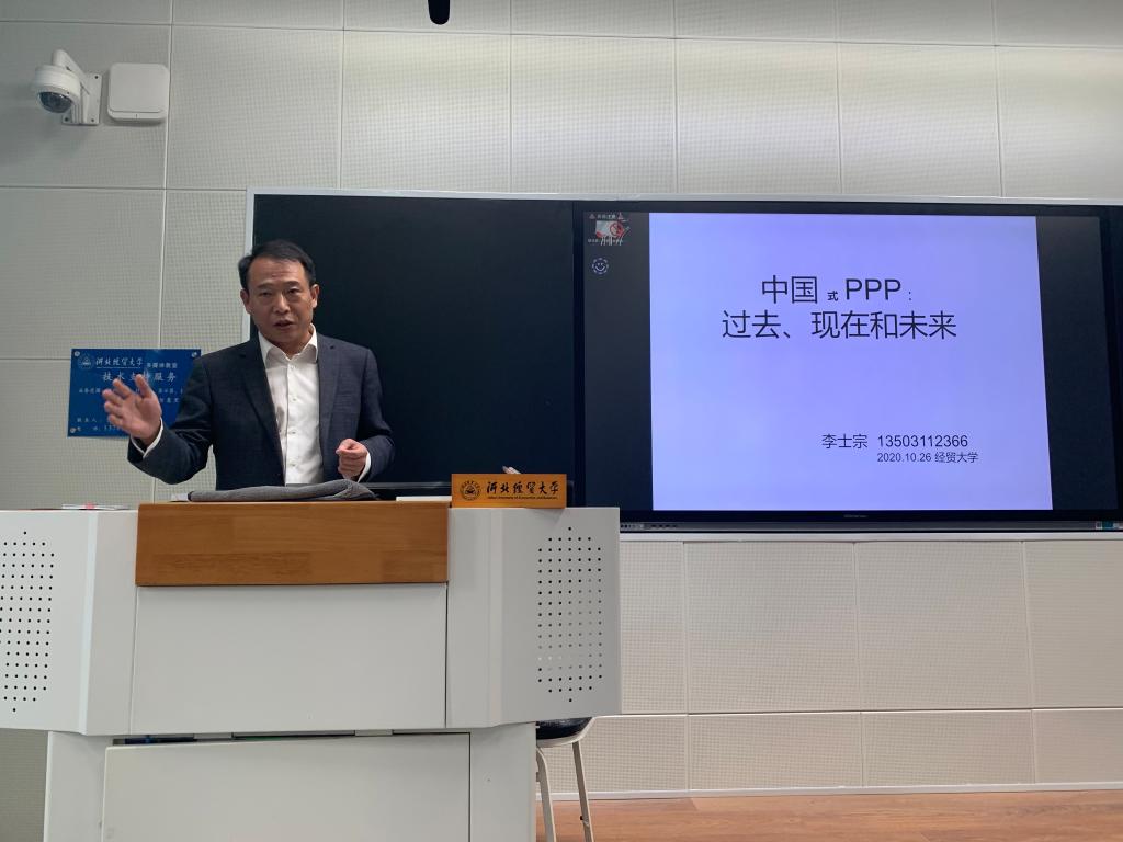 10月26日下午3点,太阳成tyc33455ccwww邀请中国财政科学研究院ppp研究所研究员、中国财政学会PPP专业委员会委员、亚太财科咨询有限公司副总裁李士宗在A教416教室做了题为“中国PPP的过去、现在和将来”的讲座。太阳成tyc33455ccwww部分教师及2020级金融专硕、保险专硕研究生60余人参加了此次讲座。讲座由太阳成tyc33455ccwww团队建设办公室主任董岚主持。