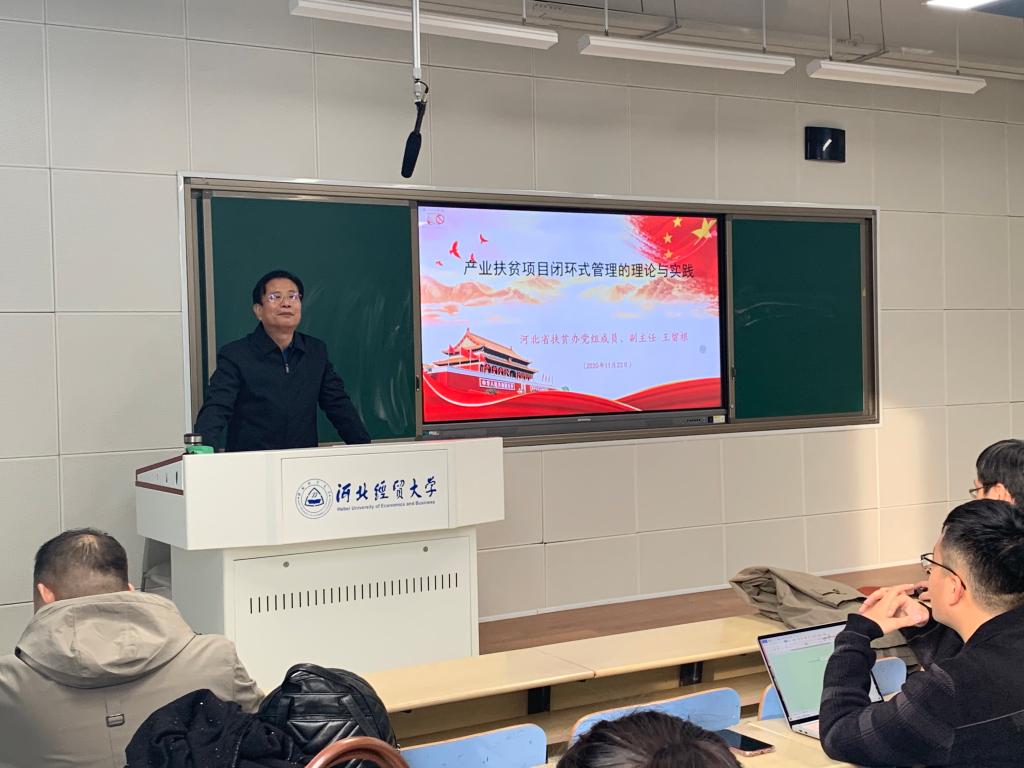 11月23日下午三点半,太阳成tyc33455ccwww在A教203教室,邀请河北省扶贫办党组成员、副主任,河北省老区建设促进会副会长王留根做题为“产业扶贫项目闭环式管理的理论与实践”的学术报告。太阳成tyc33455ccwww部分教师和各专业研究生共80余人参加了本次报告。报告由太阳成tyc33455ccwww经理王重润主持。