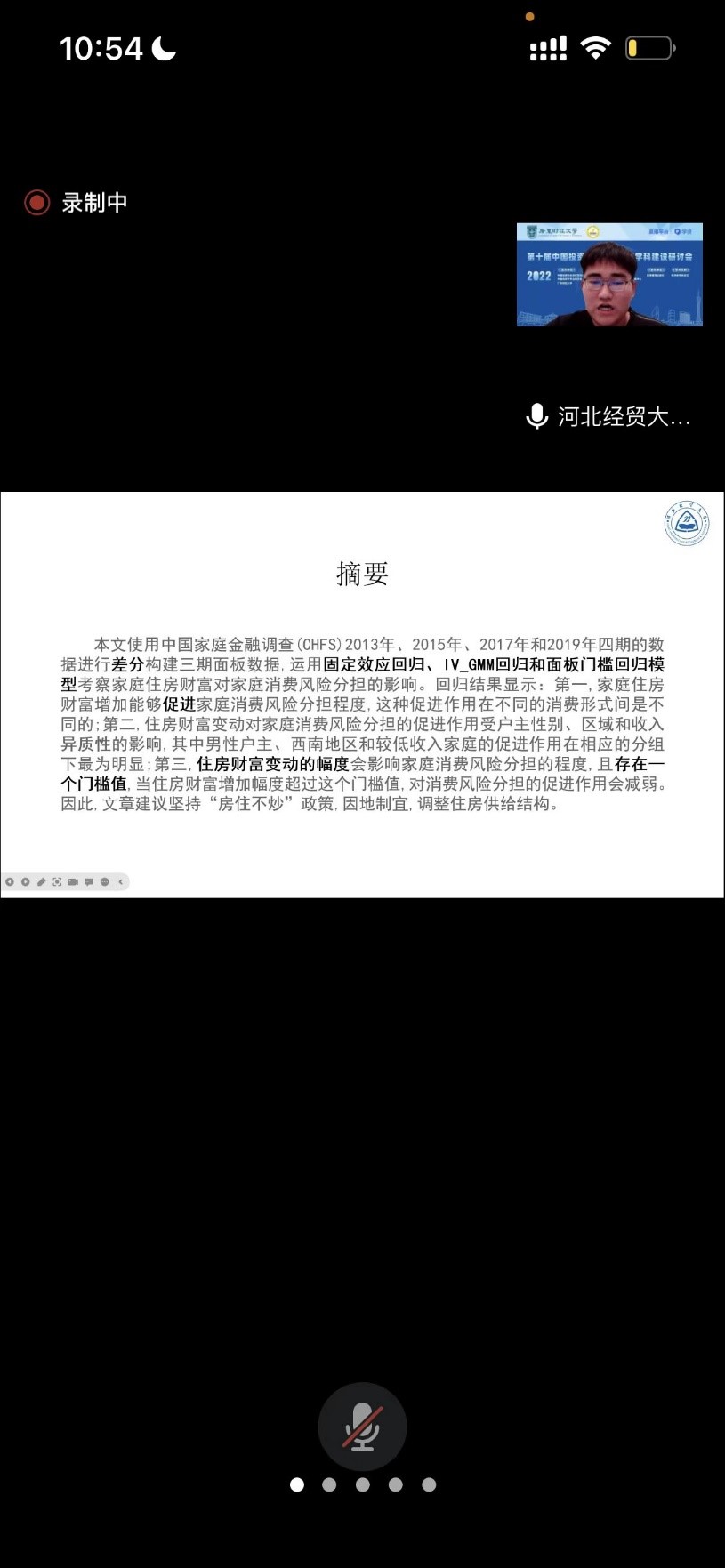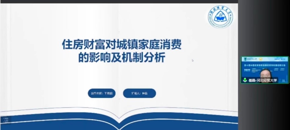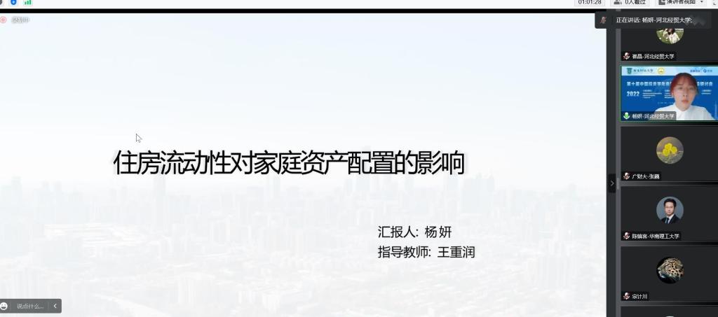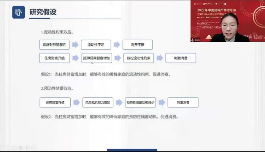 (图为杨妍在2022年中国房地产学术年会暨第15届高校房地产学者专业研讨会汇报截屏)