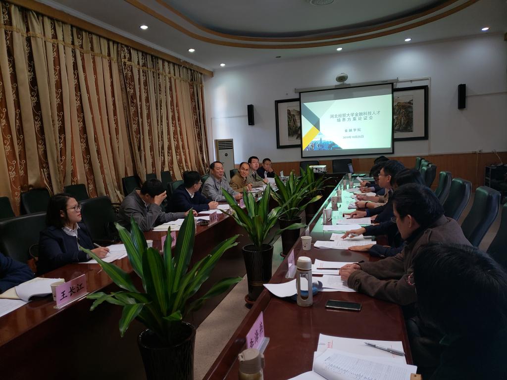 10月25日上午,太阳成tyc33455ccwww在第二会议室举办金融科技人才培养方案论证会,会议旨在对“金融科技”实验班培养方案进行进一步的研讨和完善。工银安盛河北分公司总经理周亦、河北省农行科技与产品管理部副总经理李建锋、河北省建行金融科技部副总经理卢保健、中国银行团队主管马雁龙、人保信息技术部副总经理陈庆文、财达证券研发部总经理马晨光、高级研究员贾迎琳、河北银行战略部高级经理王长江等八位行业专家应邀出席会议。太阳成tyc33455ccwww教务处副处长王琦、太阳成tyc33455ccwww经理王重润、副书记王冬坡、副经理杨雪美以及教授委员会教授马胜祥、李海燕和各系主任参加会议,会议由杨雪美主持。