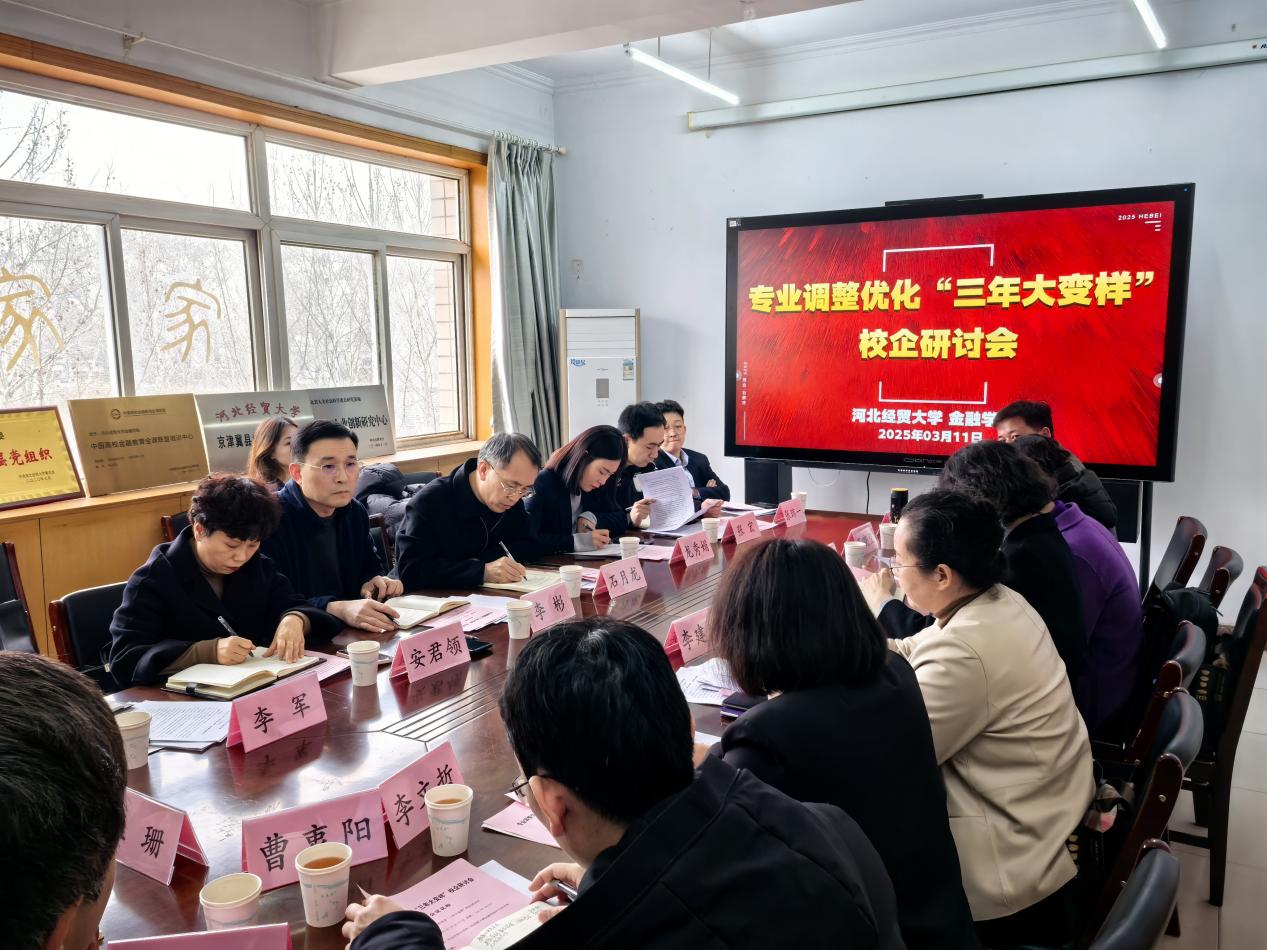 2025年3月11日,太阳成tyc33455ccwww组织召开专业调整优化“三年大变样”校企研讨会。会议邀请中国人民银行河北省分行、第一创业证券河北分公司、中国金融传媒股份有限公司、河北银行及恒银期货有限公司等单位的行业专家参与研讨。太阳成tyc33455ccwww经理杨雪美、投资学专业负责人李建英、保险学专业负责人冯文丽及各专业系主任参会,副经理窦丽琛主持。