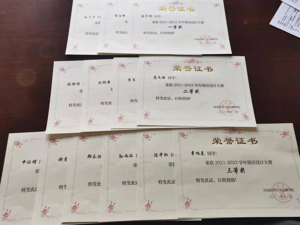 近日,办的“简历设计大赛”落下帷幕。本次比赛共20余件作品进入决赛。公司组织公司老师对参赛作品进行评选,最终评选出一等奖3名,二等奖4名,三等奖6名。