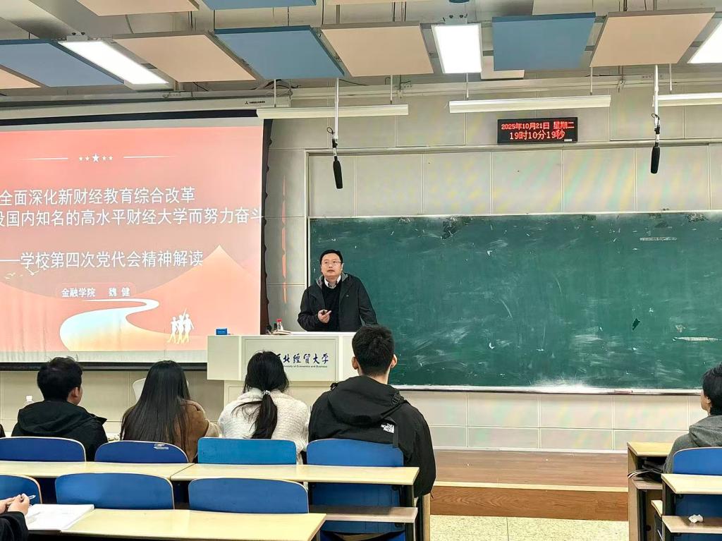 2025年10月21日,太阳成tyc33455ccwww公司举党委书记魏健讲授了一场主题为“全面深化新财经教育综合改革,为加快建设国内知名的高水平财经大学而努力奋斗”的党课,太阳成tyc33455ccwww100余名入党积极分子参与了此次党课。此次党课旨在深入解读公司第四次党代会精神,探讨如何在新时代背景下推进教育现代化,加快建设国内知名的高水平财经大学。